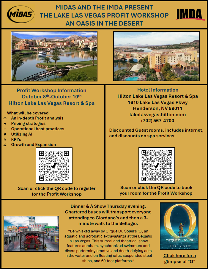 Midas and IMDA, along with the Profit Masters are teaming up once again to bring you multiple Dealer Profit Seminars in 2025. These seminars take a deeper dive into the numbers that impact profit and will provide tactics you can utilize to improve your store's sales and car count profitably.